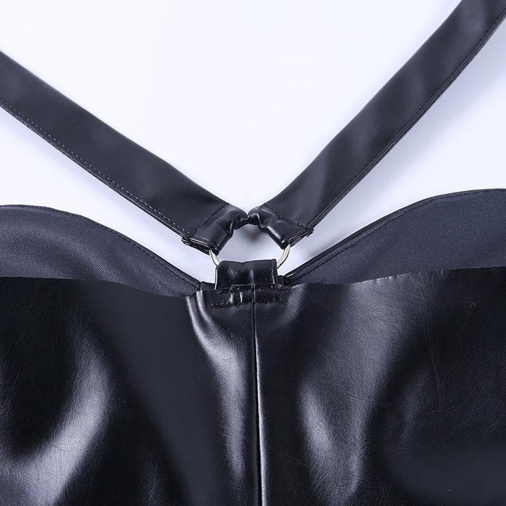 Gants col en cœur anneau en O mini robe en cuir PU solide