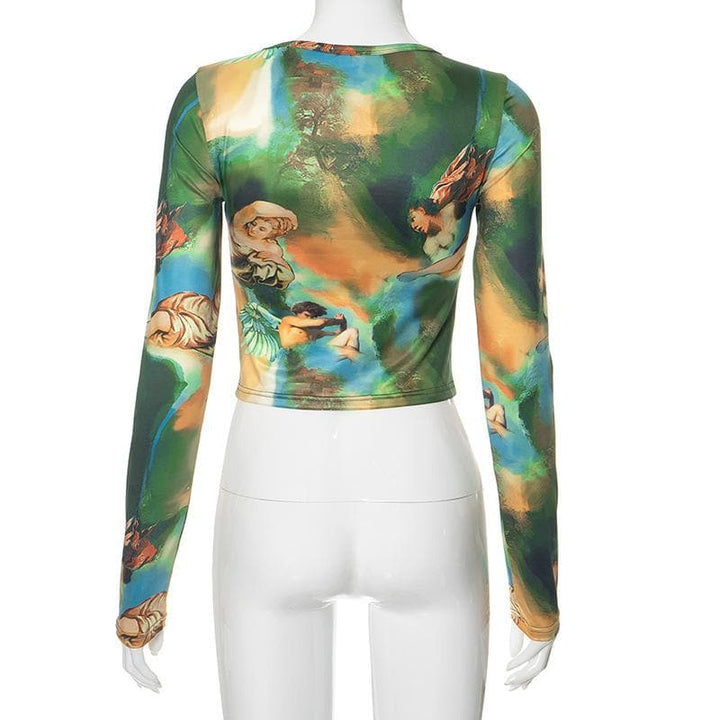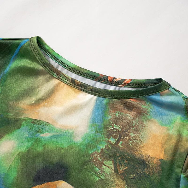 Haut à manches longues, col ras du cou, imprimé contrasté tie dye