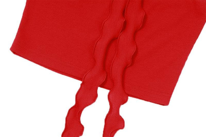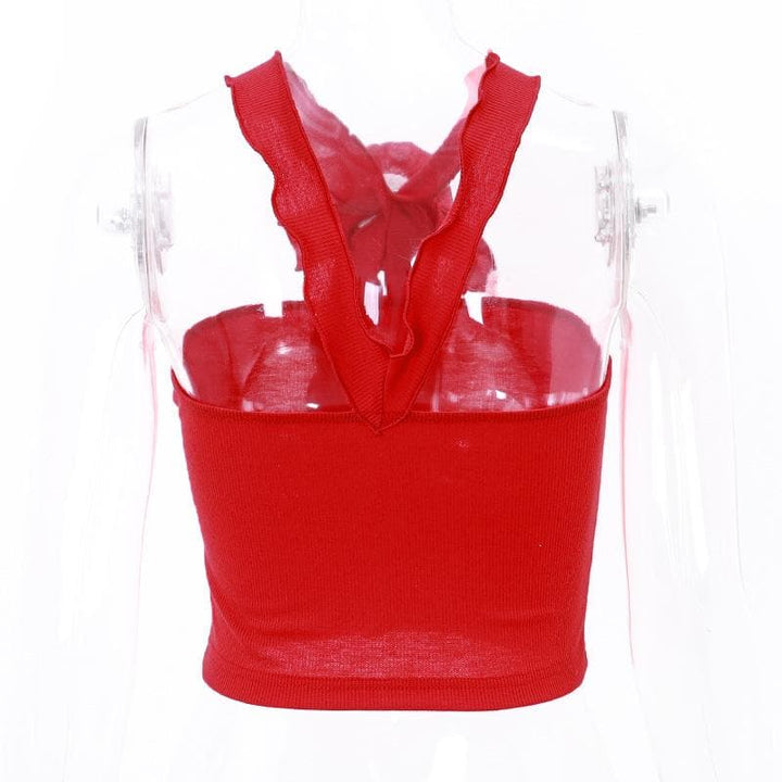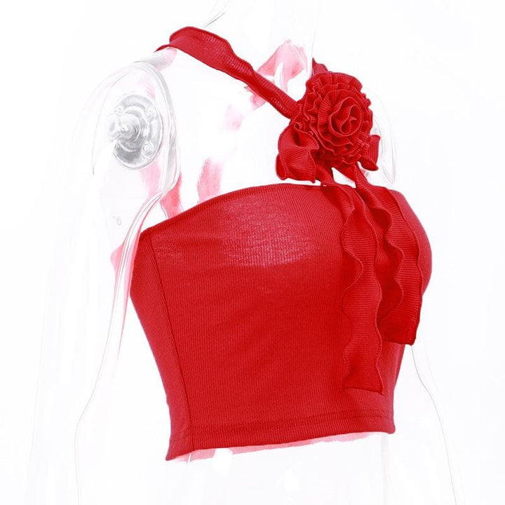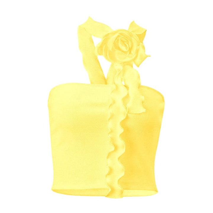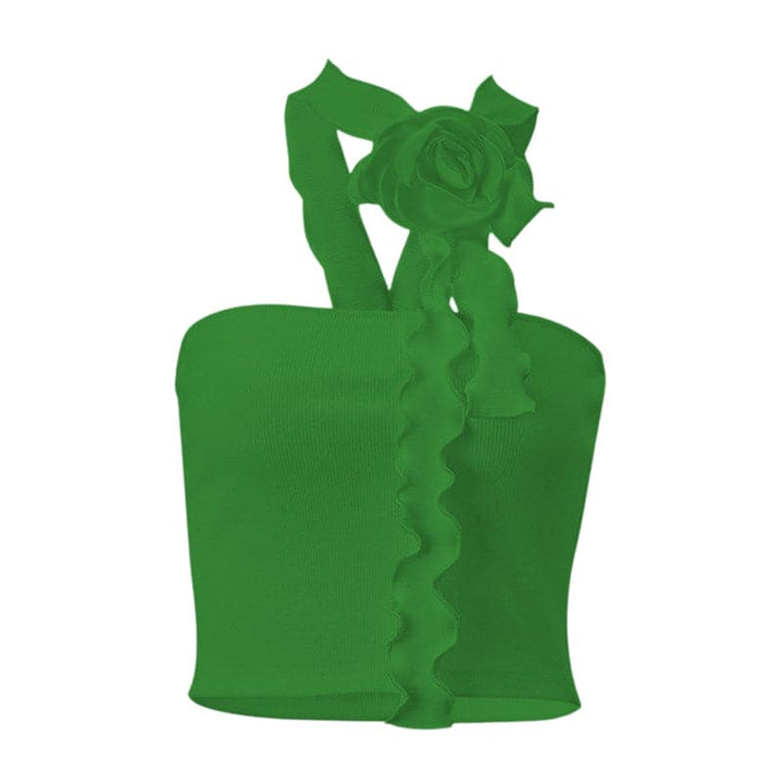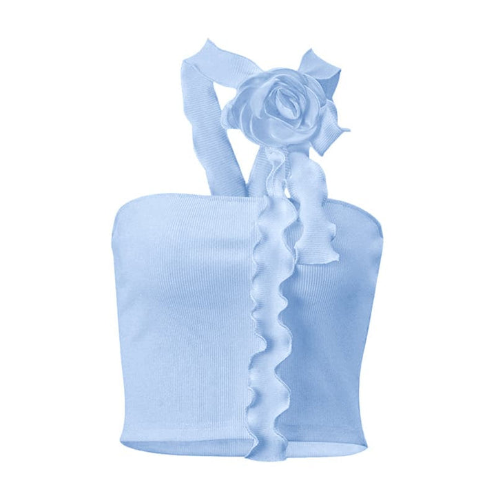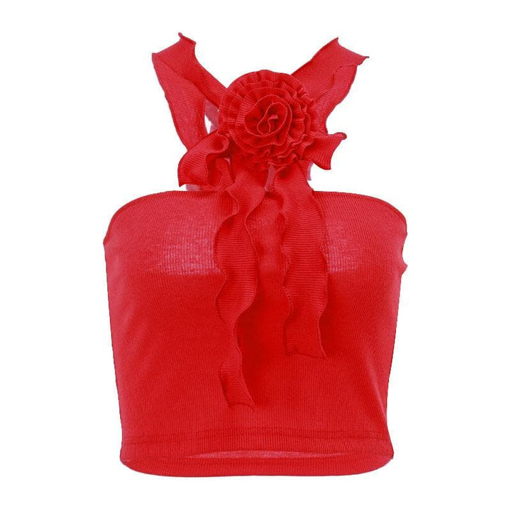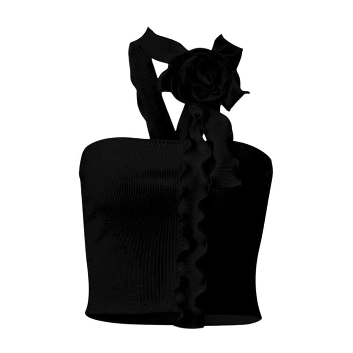 Haut court dos nu uni à appliques florales côtelées et à double sens