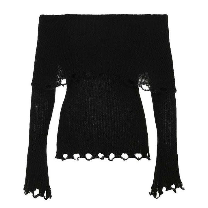 Crochet long sleeve hollow out off shoulder solid cut out top