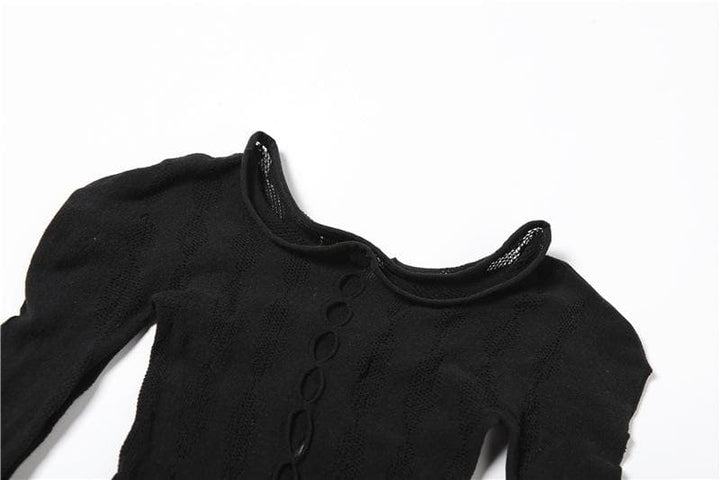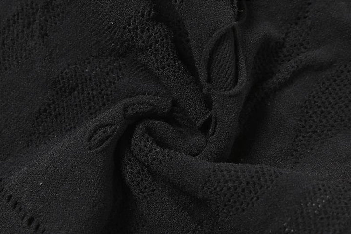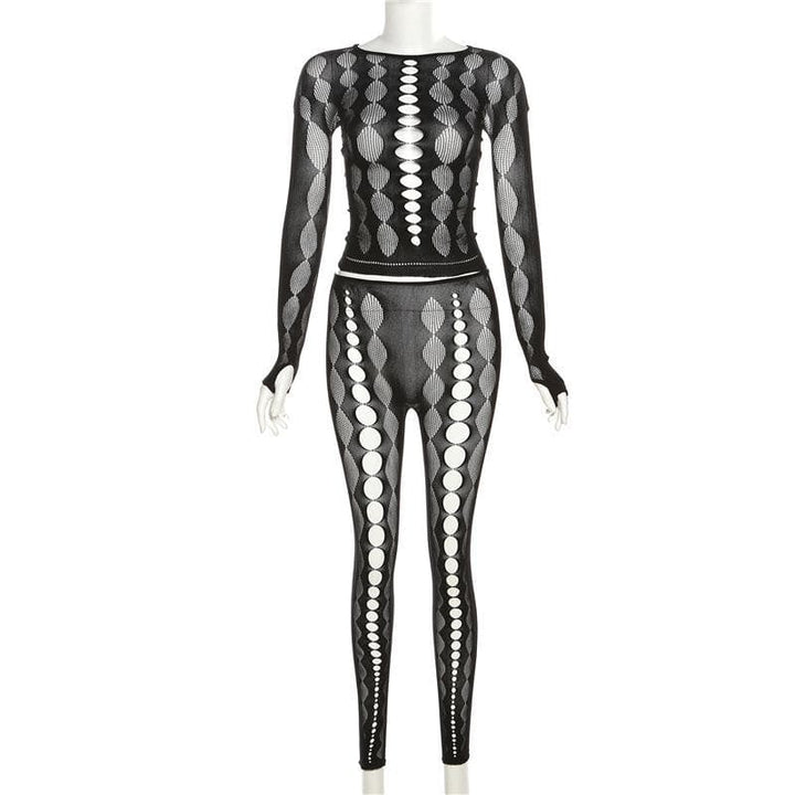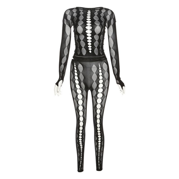 Fishnet long sleeve hollow out see through gloves solid pant set