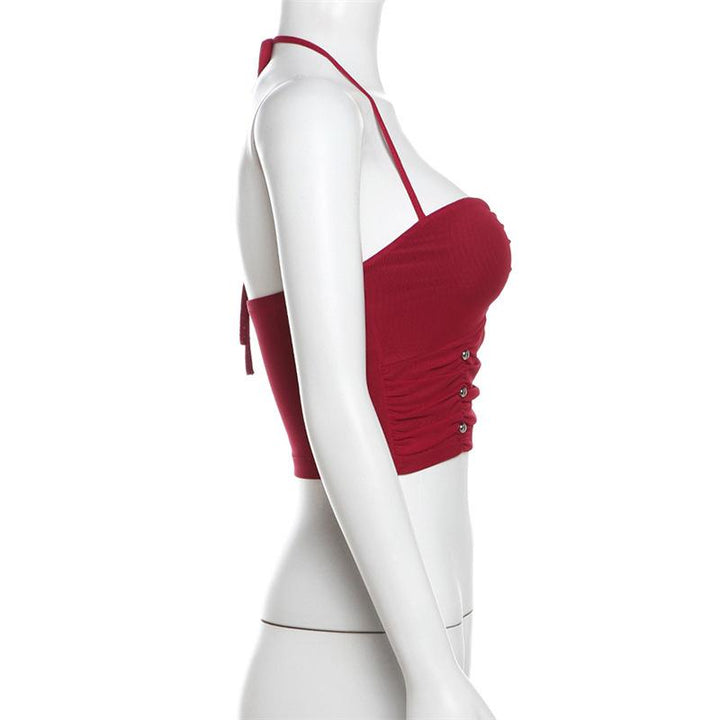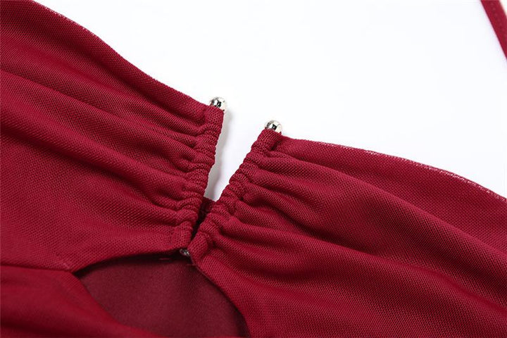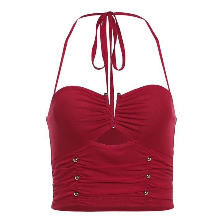 Halter ruched hollow out beaded top