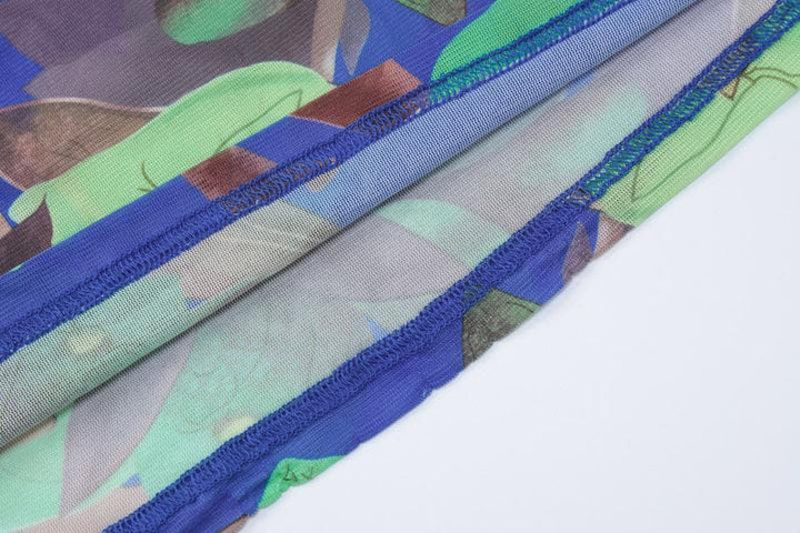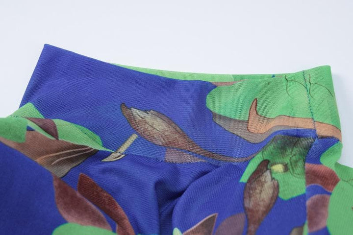 High neck padded flower print long sleeve maxi dress