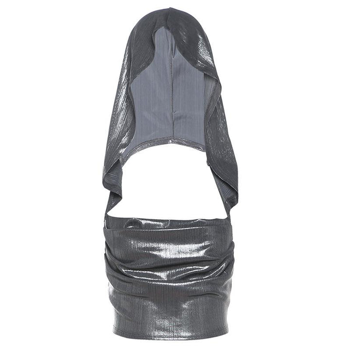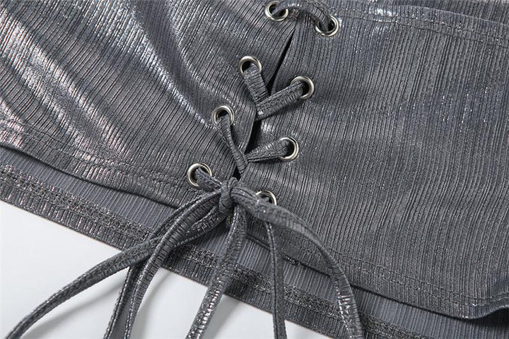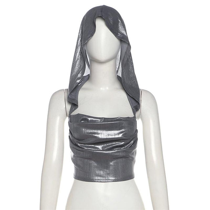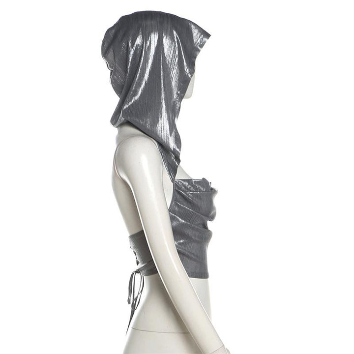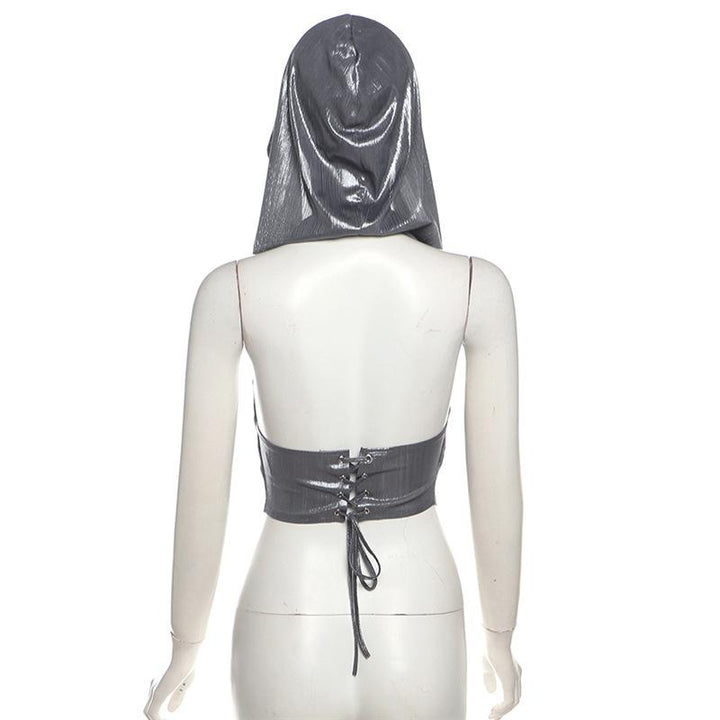 Hoodie metallic backless lace up crop top