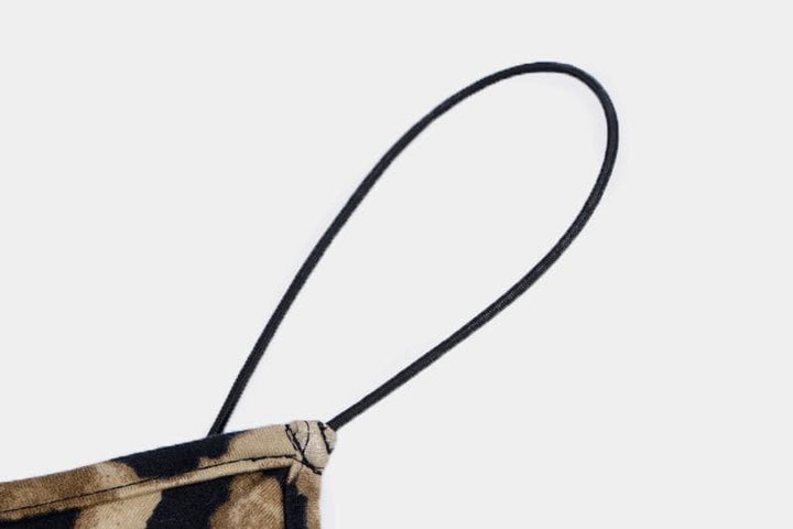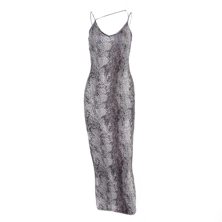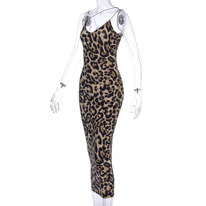 Leopard print contrast spaghetti strap u neck backless midi dress