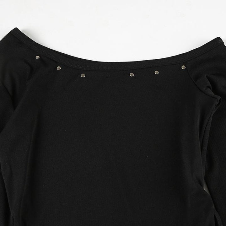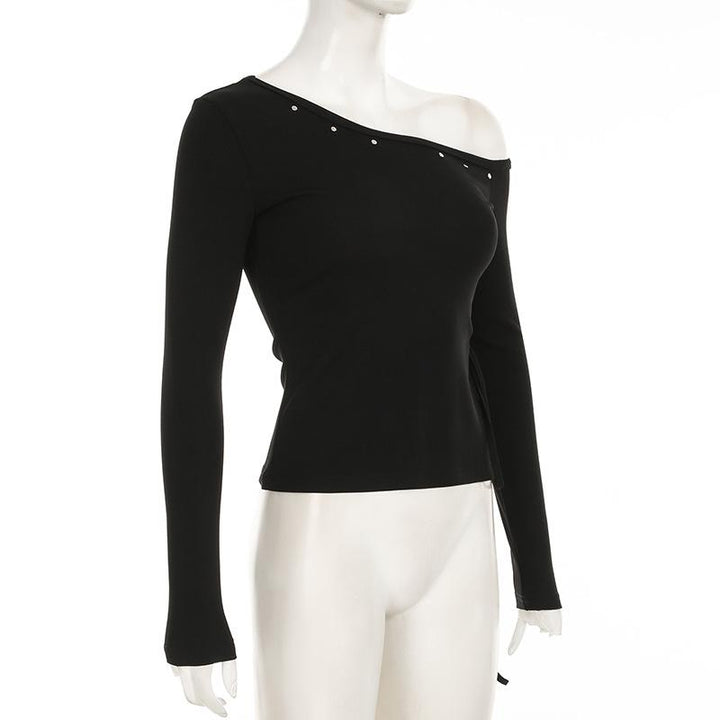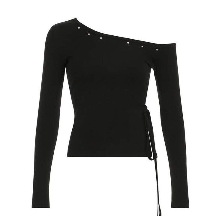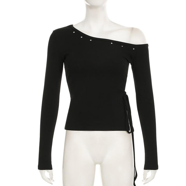 Long sleeve one shoulder slit self tie top