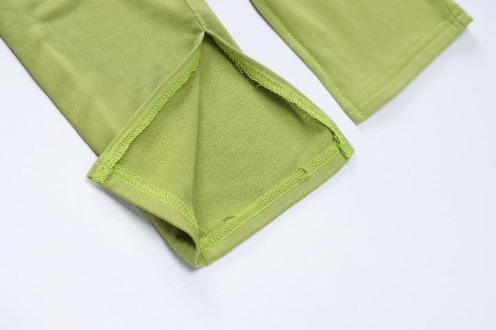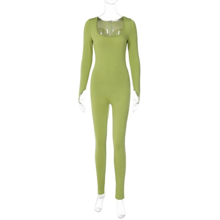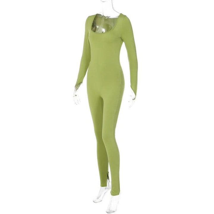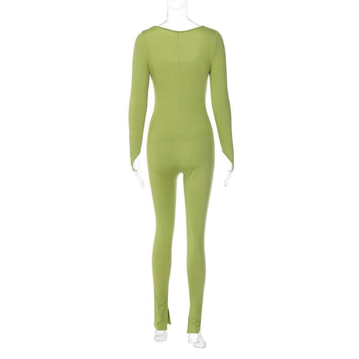 Long sleeve solid u neck slit jumpsuit