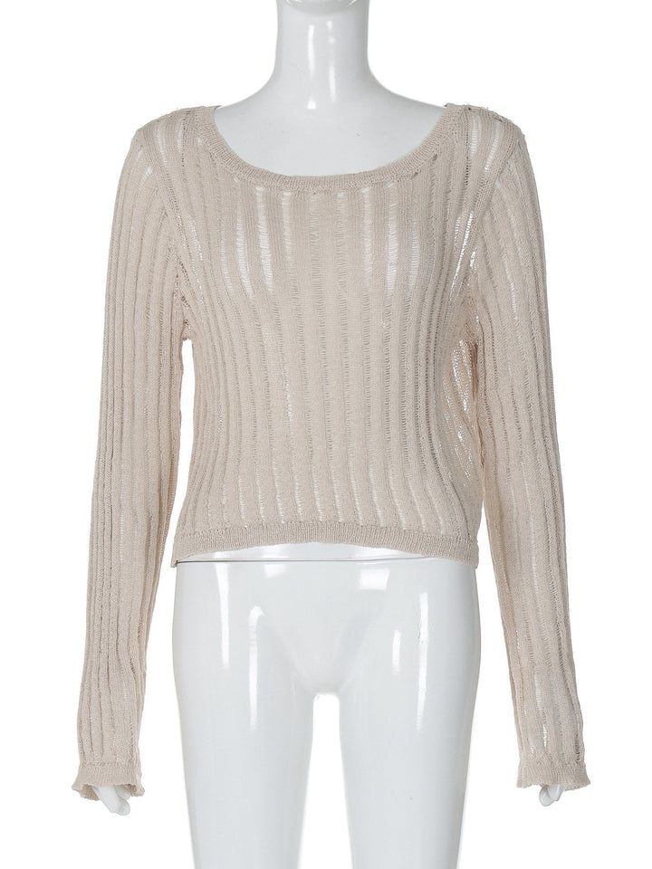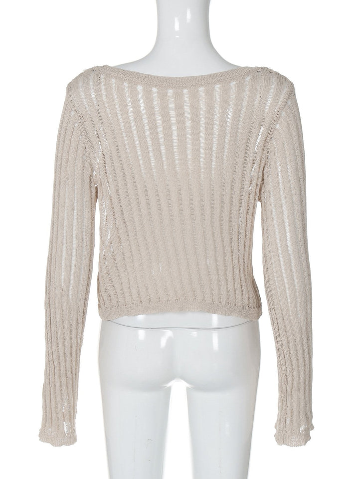 Long sleeve u neck knitted solid top