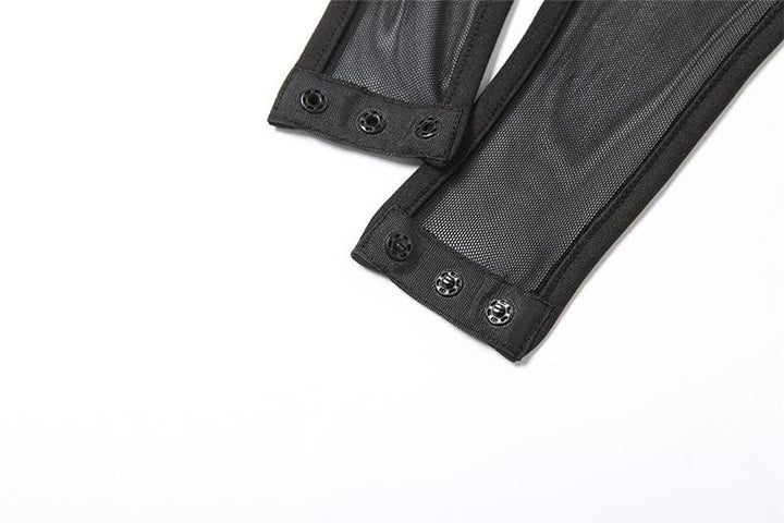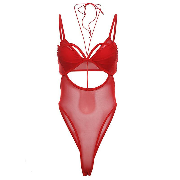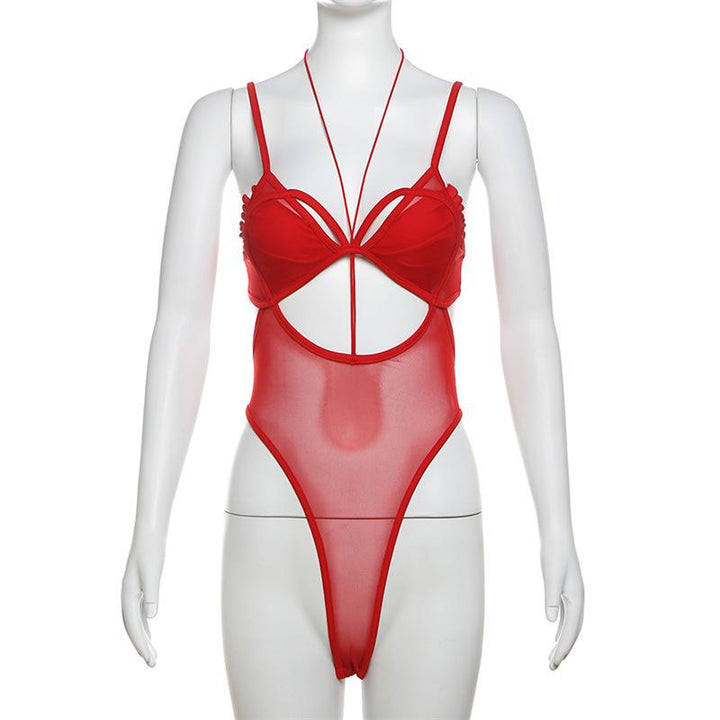Mesh hollow out stitch ruffle solid cami bodysuit