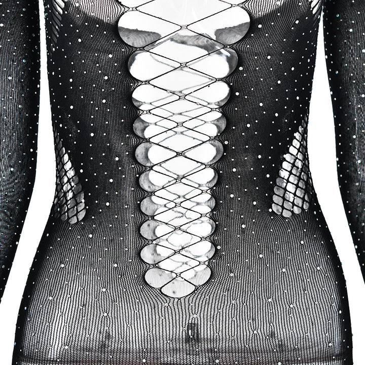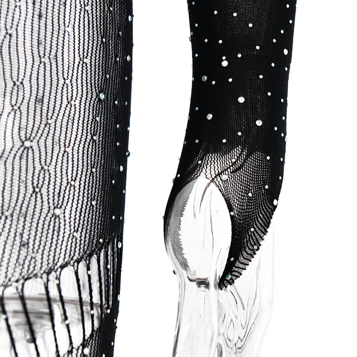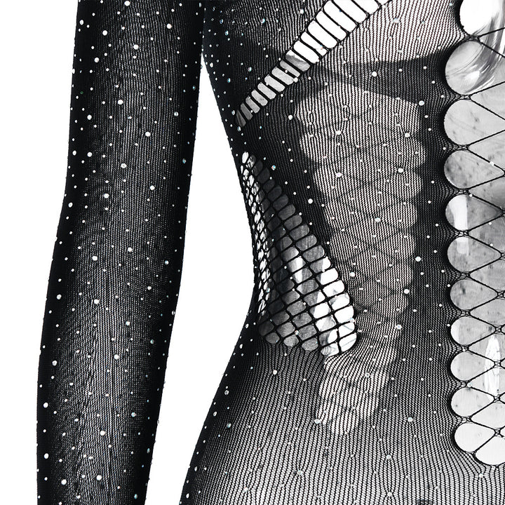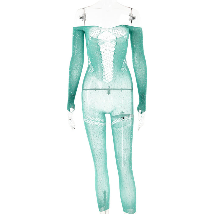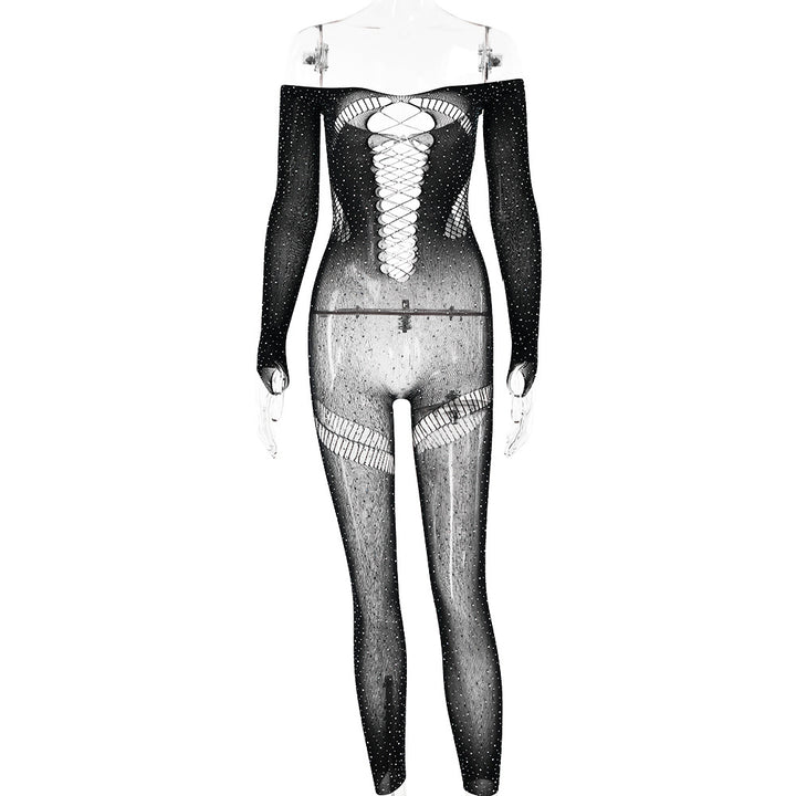 Off shoulder long sleeve beaded hollow out jumpsuit