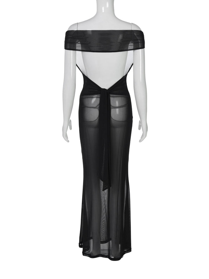 Off shoulder mesh backless maxi dress