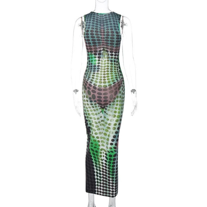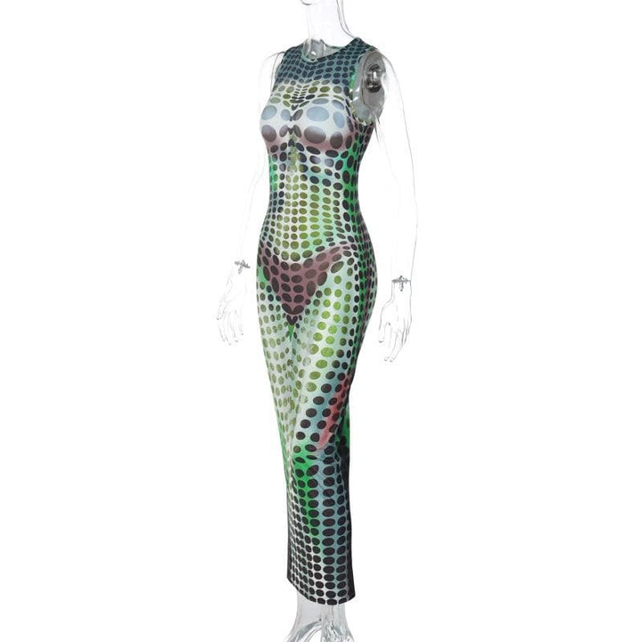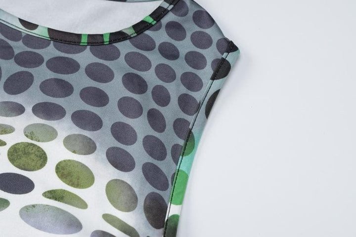 Polka dot contrast sleeveless crewneck maxi dress