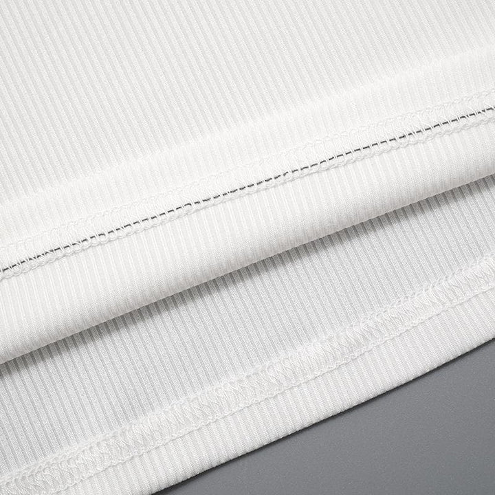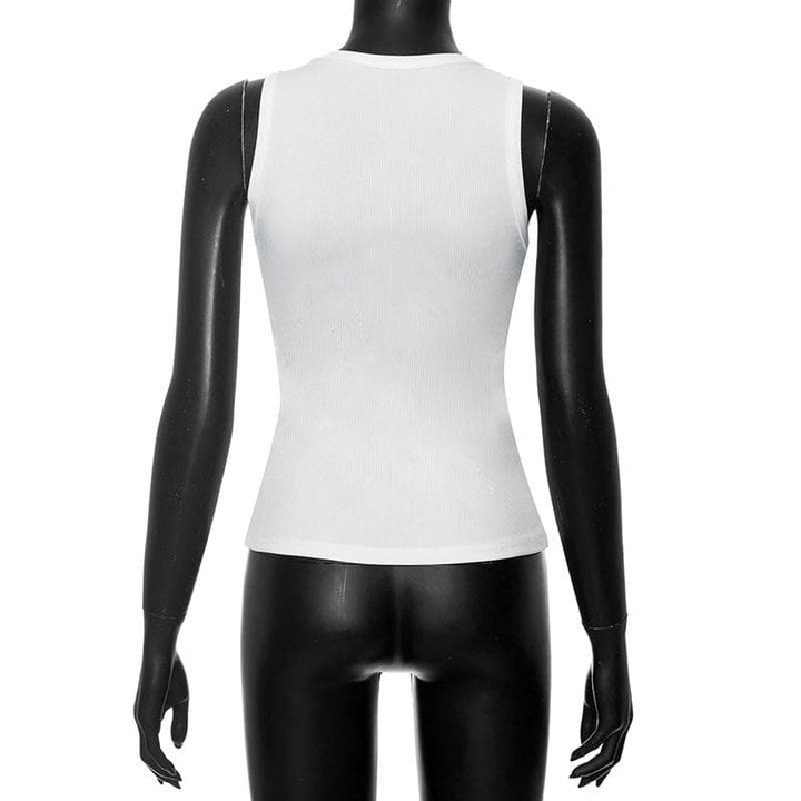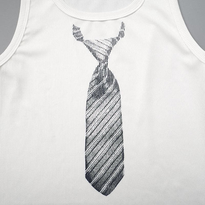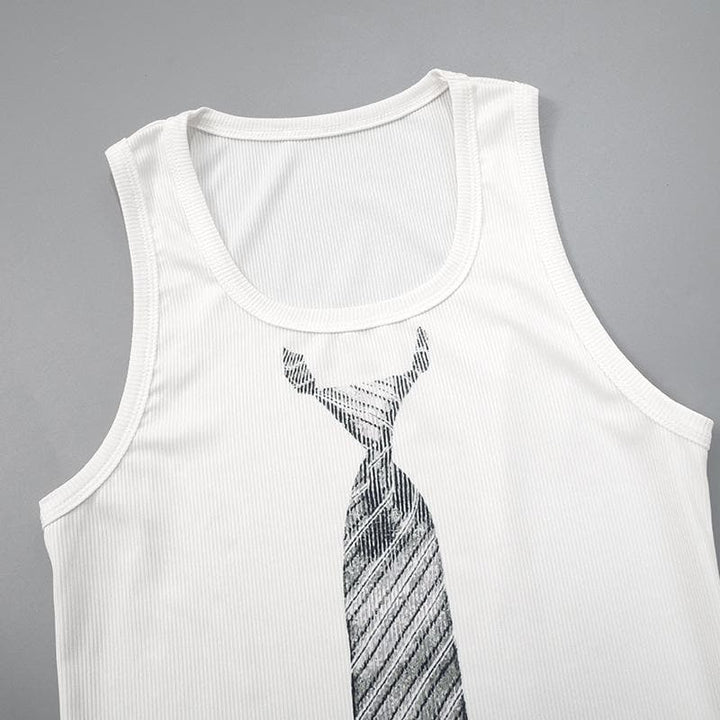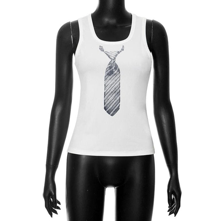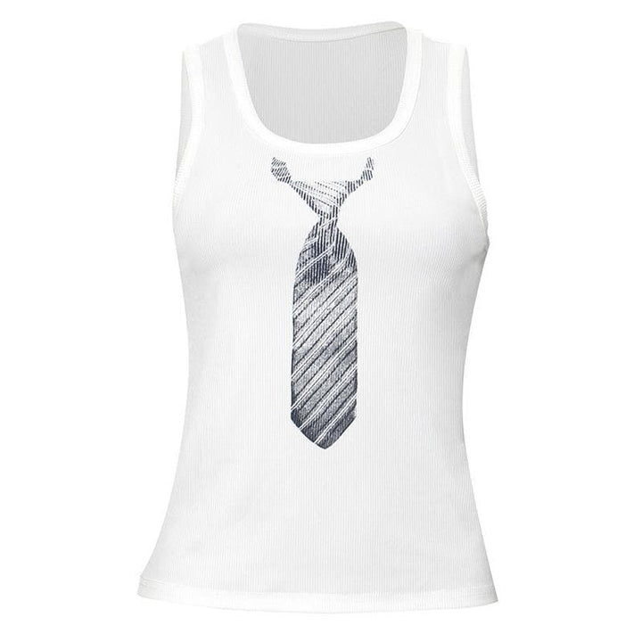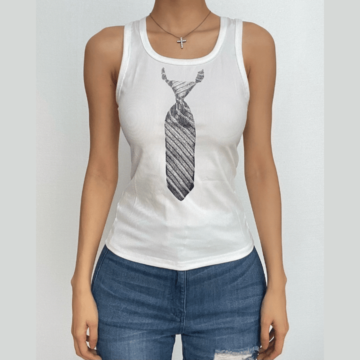 U neck necktie print ribbed contrast sleeveless top