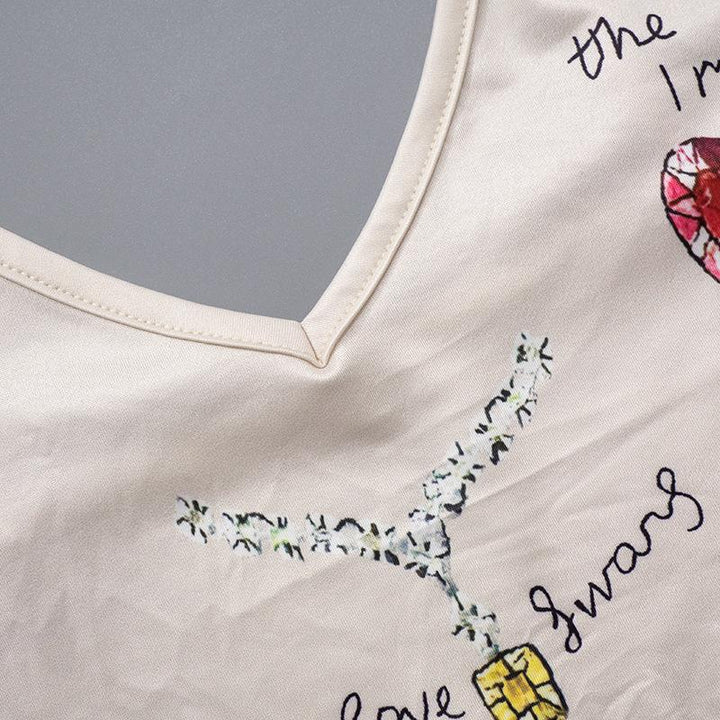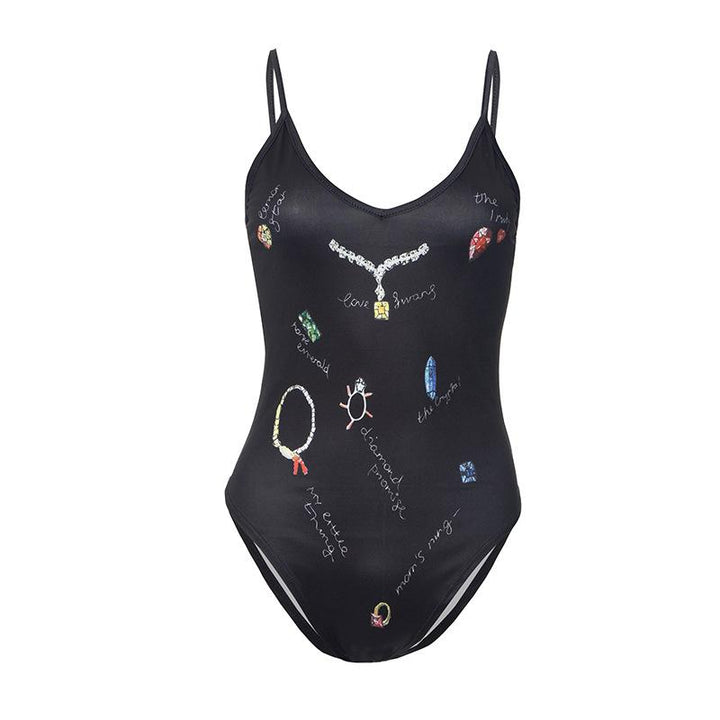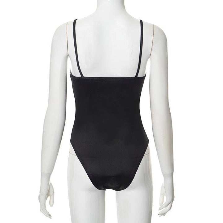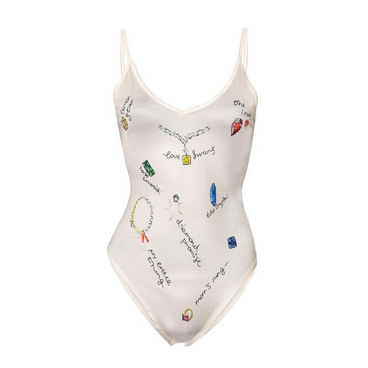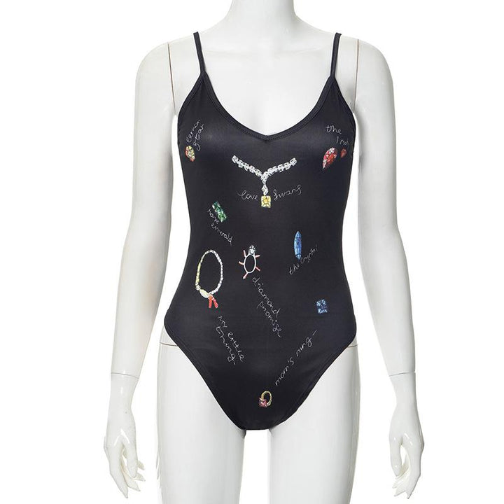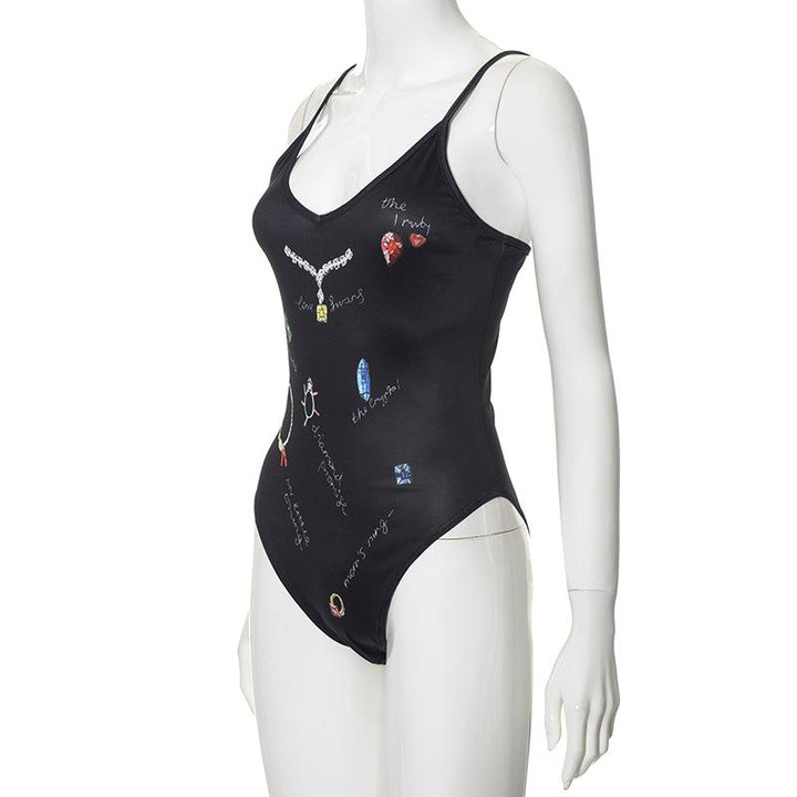 V neck backless print cami bodysuit