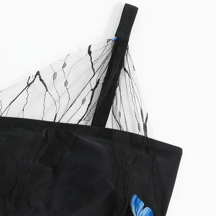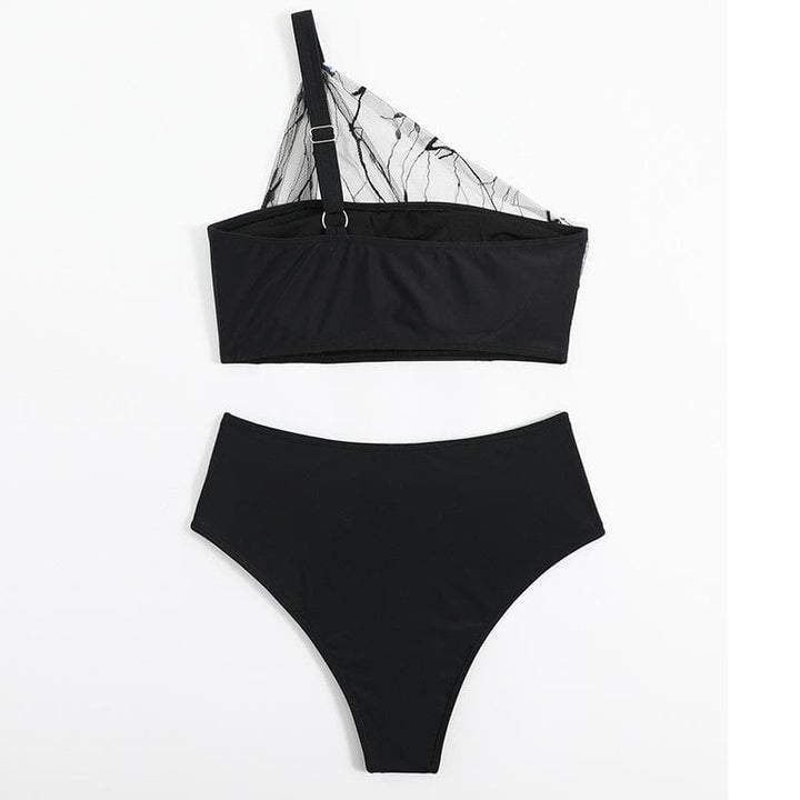 Maillot de bain bikini irrégulier à une épaule avec appliques papillon et ourlet en dentelle