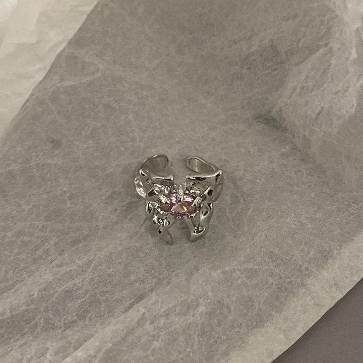 Pendentif papillon pierre de lave bague ouverte argent