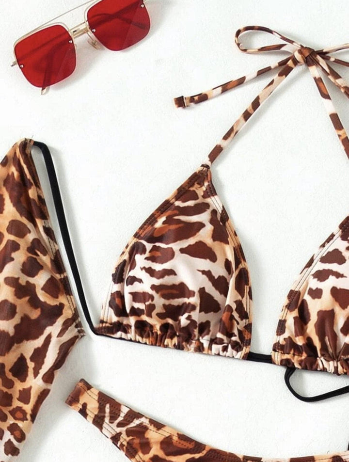 Maillot de bain 4 pièces avec mini-jupe à nouer et manches longues contrastées