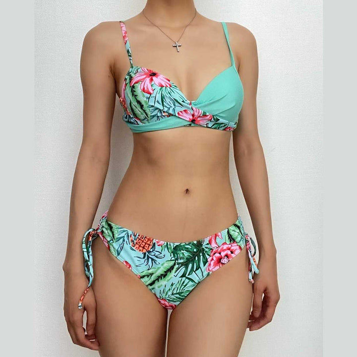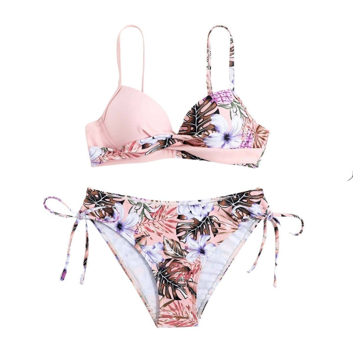 Maillot de bain bikini à bretelles croisées et rembourré à imprimé floral