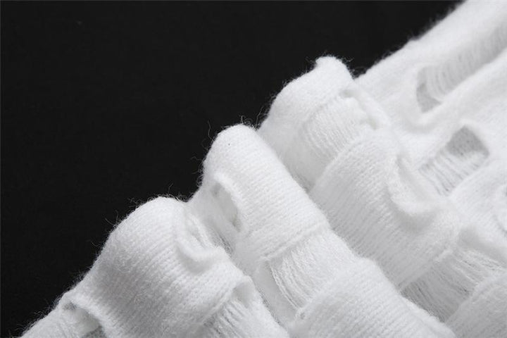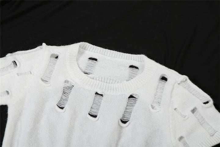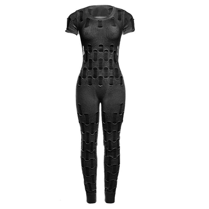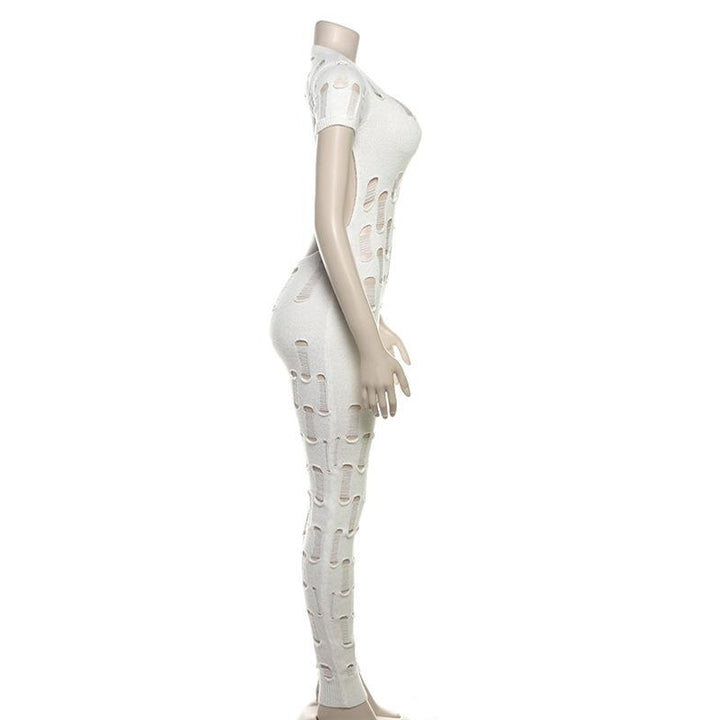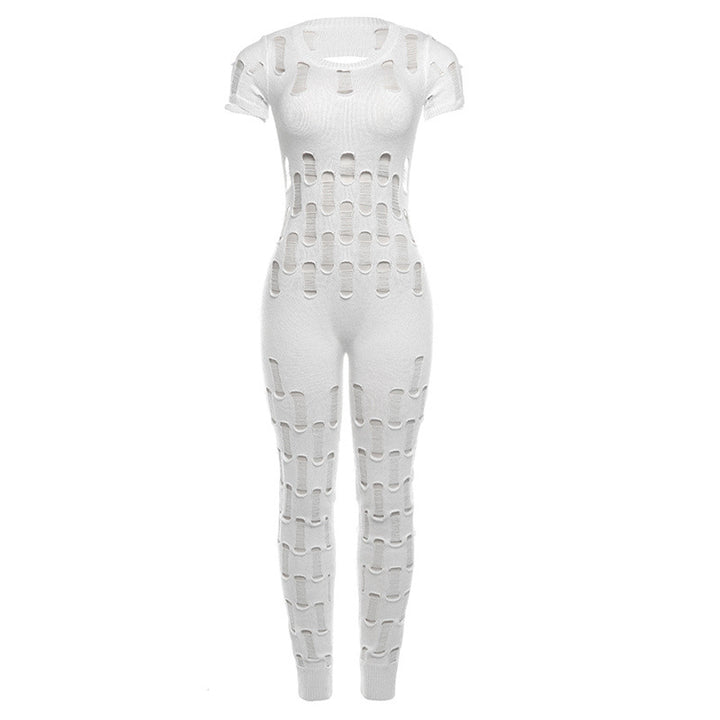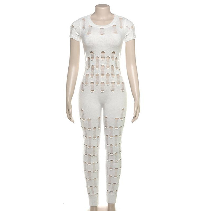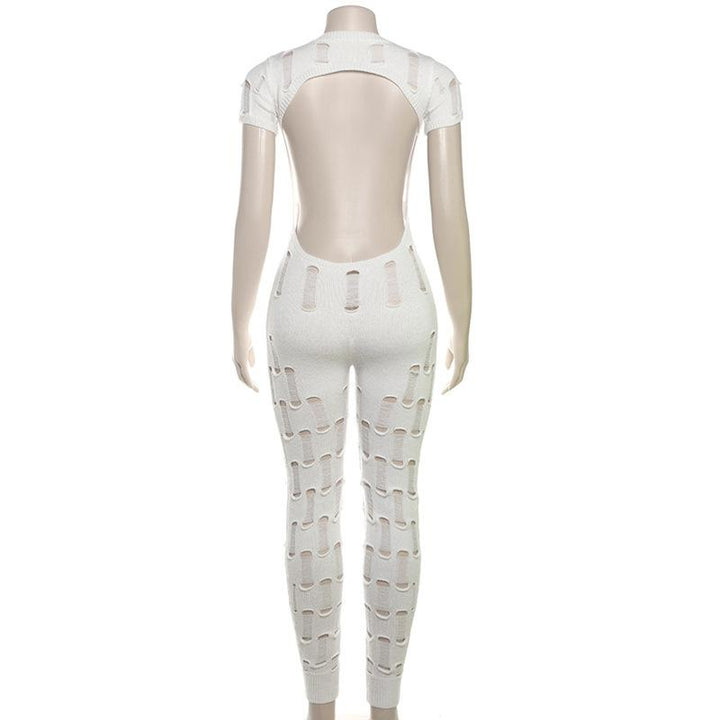 Combinaison tricotée à manches courtes et col ras du cou ajourée et dos nu