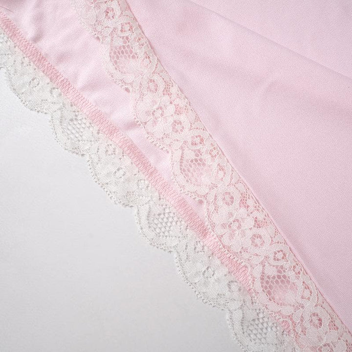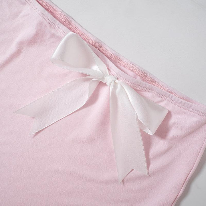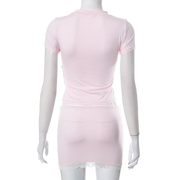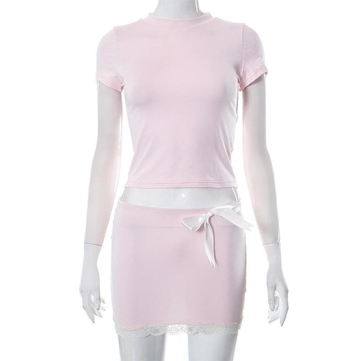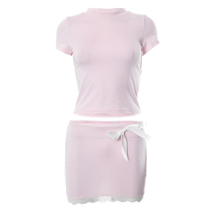 Ensemble mini-jupe à col haut et manches courtes avec nœud papillon et ourlet en dentelle