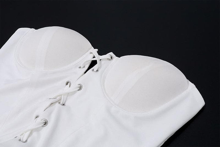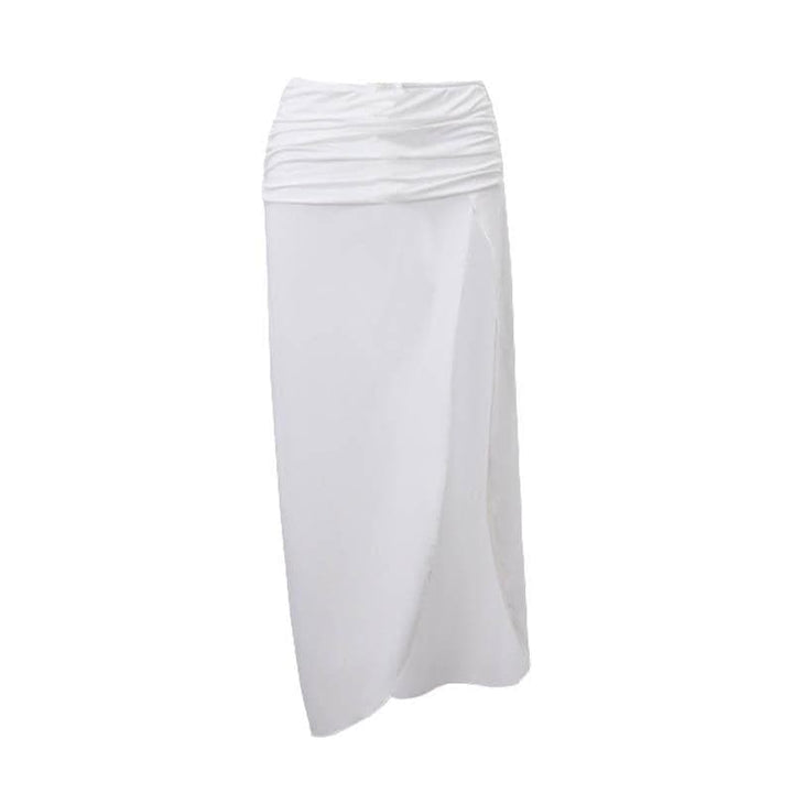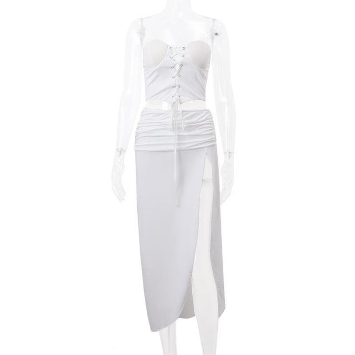 Ensemble jupe midi froncée à fente haute et col en cœur à lacets