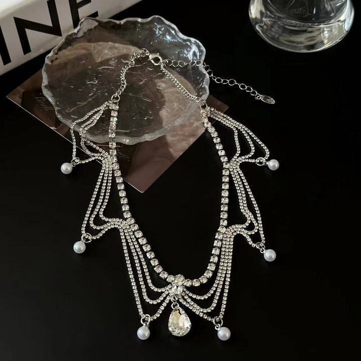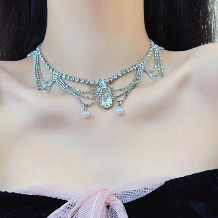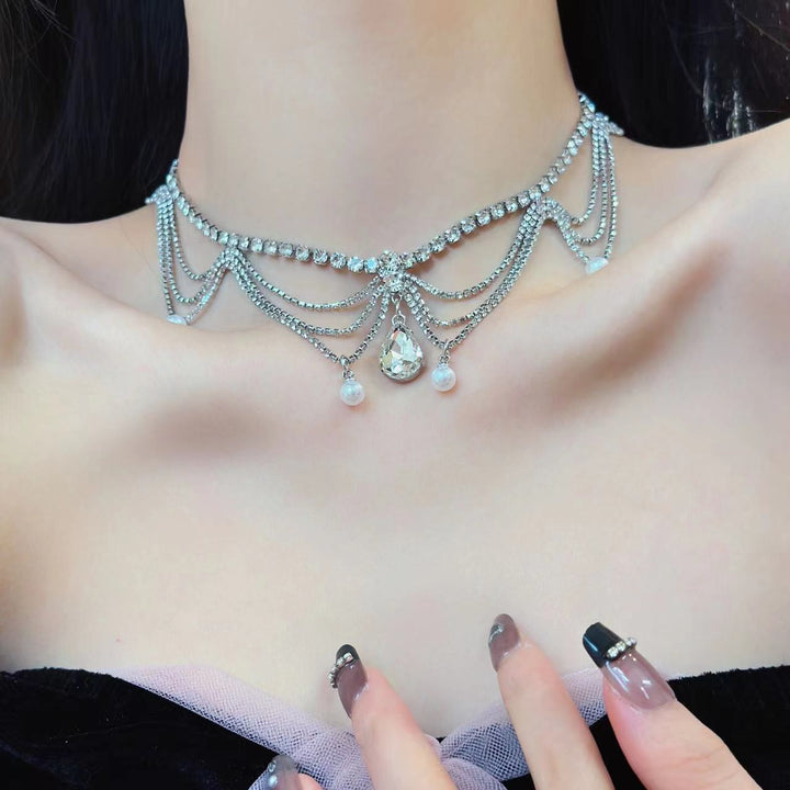 Collier ras du cou avec pendentif en strass superposé