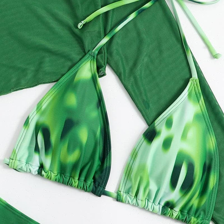 Maillot de bain 3 pièces à manches longues et col licou en maille imprimé léopard