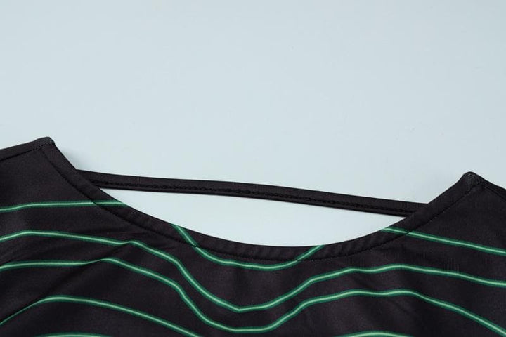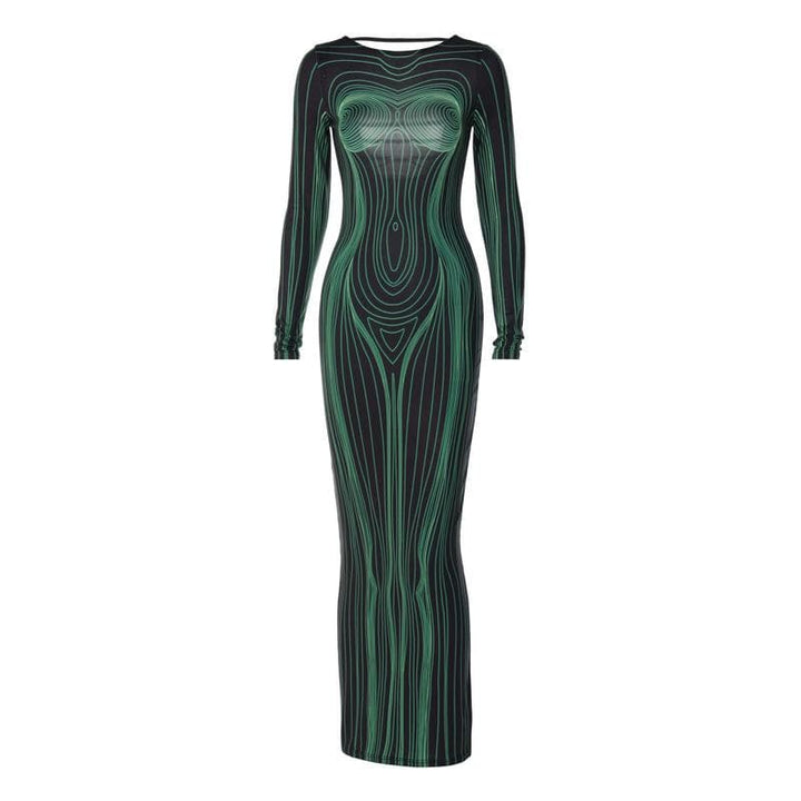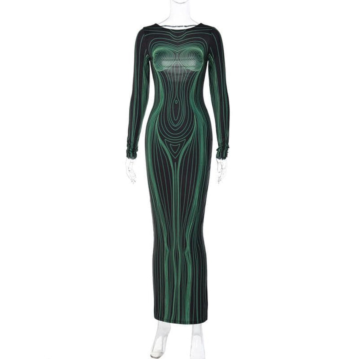 Robe longue à manches longues, col rond, imprimé abstrait contrasté