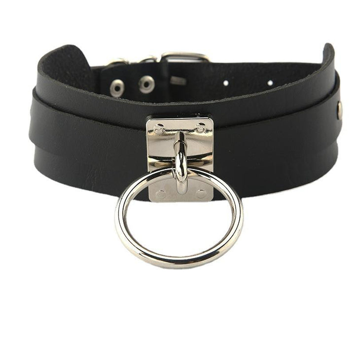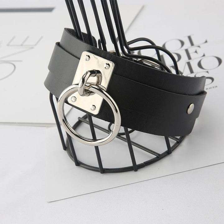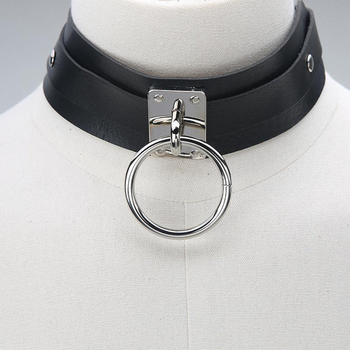 Collier ras du cou réglable en cuir PU avec anneau en O