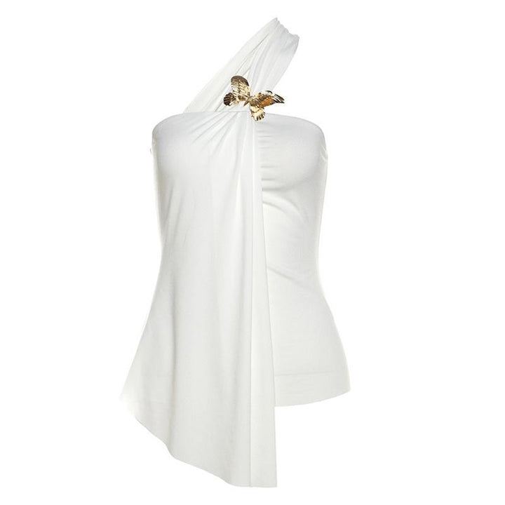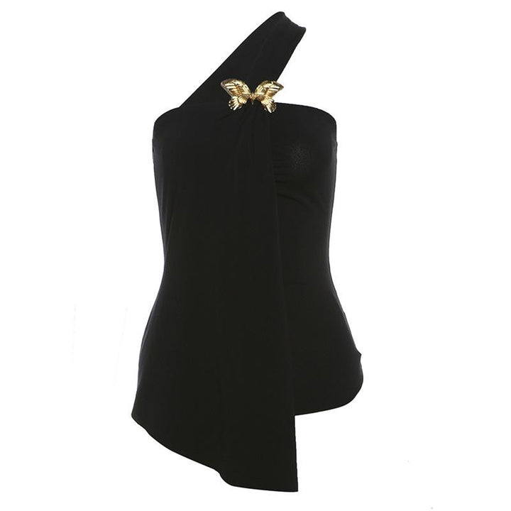 Haut asymétrique en mousseline avec applique papillon irrégulière