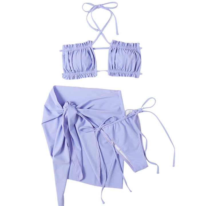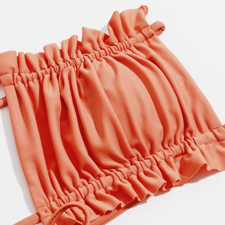 Maillot de bain 3 pièces froncé à nouer soi-même, dos nu, couleur unie
