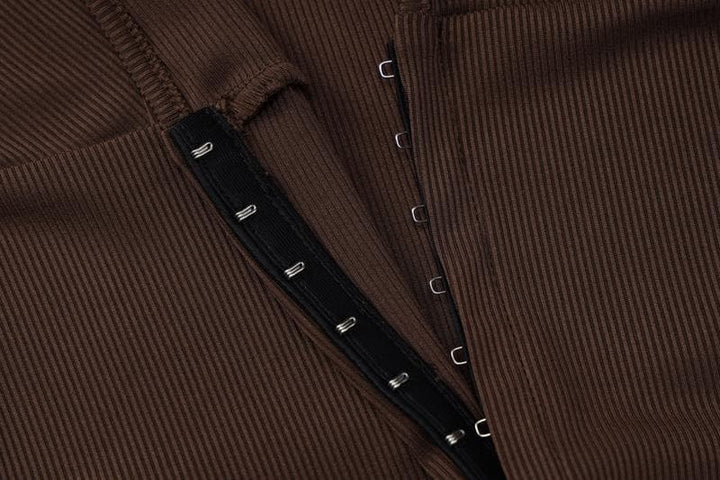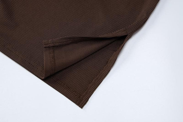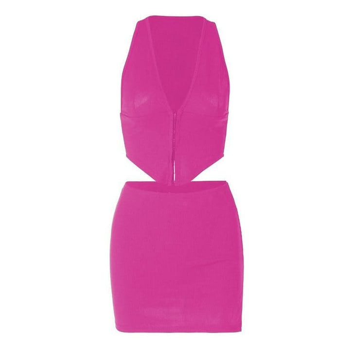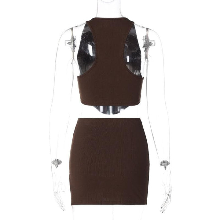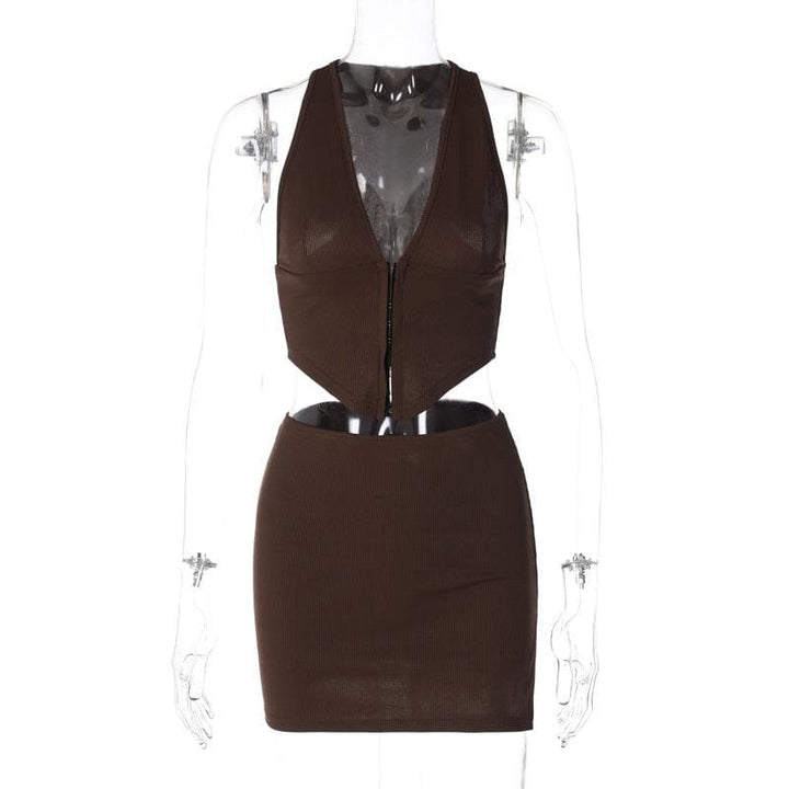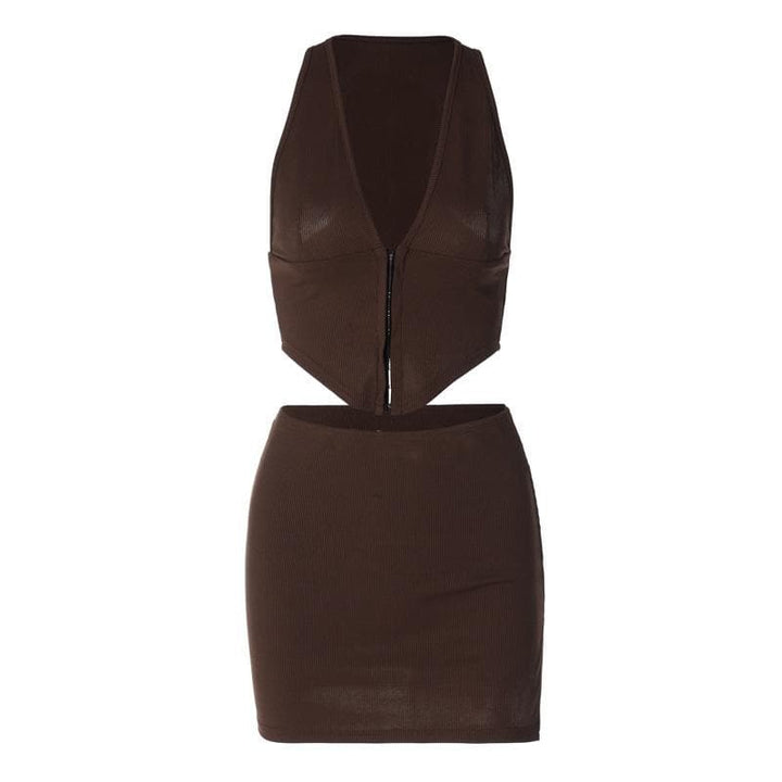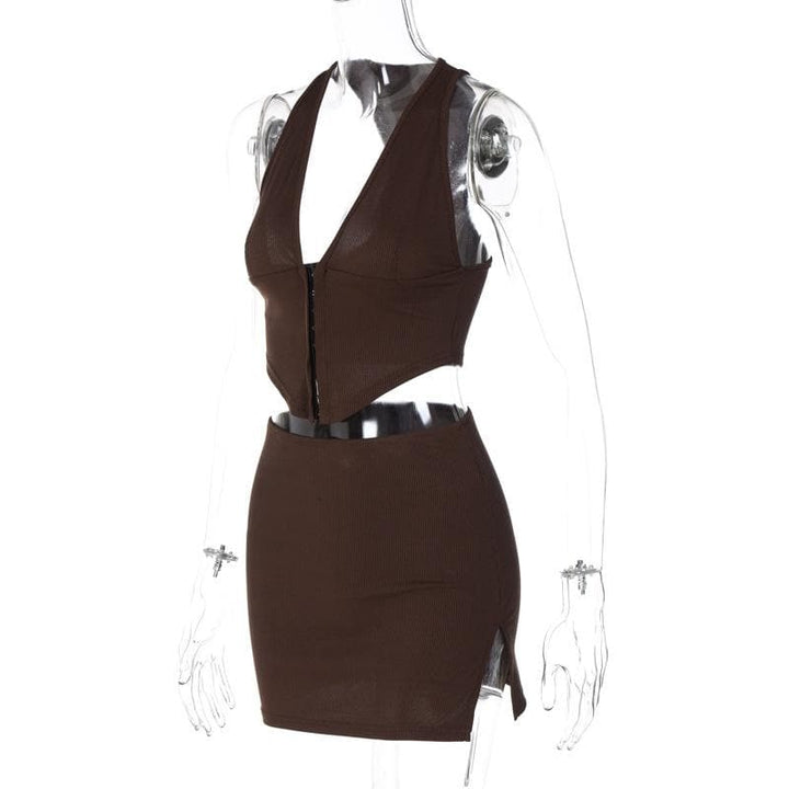 Ensemble mini-jupe boutonnée fendue unie sans manches à col en V