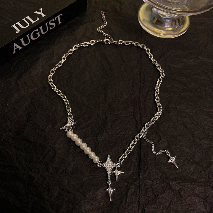Collier ras du cou superposé avec pendentif étoile et fausses perles